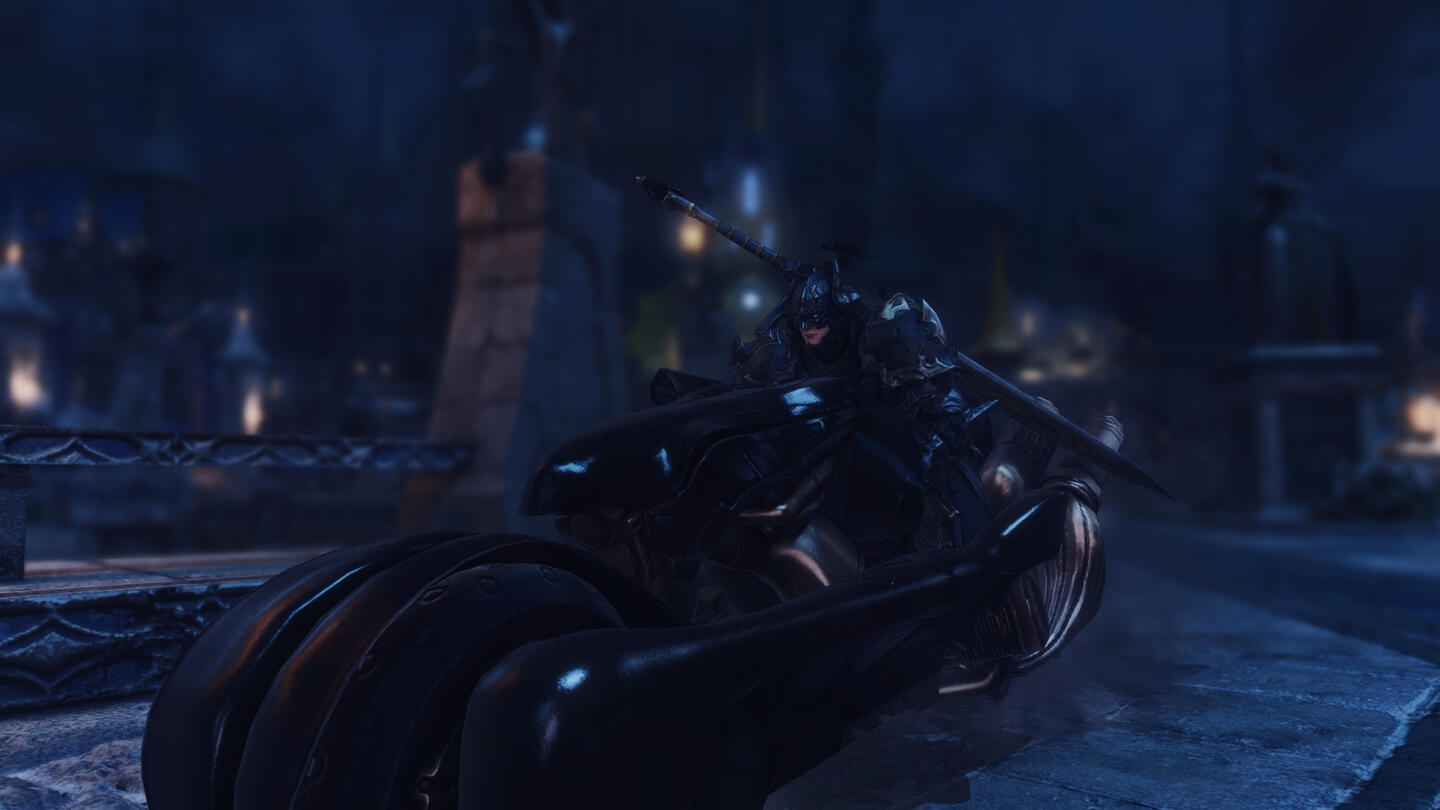 Master Combatant - Nightwind is a fearsome combatant, one of the deadliest opponents any could face, who wields the combat arts with an almost supernatural mastery. His skill with the traditional Dark Knight greatsword is near unmatched, and he is highly trained in Ishgardian spear and longsword techniques. Through years of training with martial artists during his worldly travels, he has developed a personalized style of unarmed combat to fit his needs.