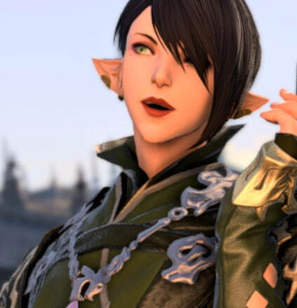 Sylvain is a rather impressive figure, commanding a room by his voice and posture alike. He is tall by Elezen standards, towering over some of his own kin at 6 fulm, 10 ilm, with shoulders that are broad. His hair is a verdant green, framing his noble visage and square jaw. His eyes are fierce and a piercing, ice blue, and a long scar runs down his left eye.He is almost always glad in a tailored jacket, lined with fur and bearing the colors of sigil of his House. It is made of the finest silks and cloths, and close inspection of the garment would reveal Ishgardian symbols woven into the fabric in a repeating fashion. The rest of his garb consists of fine leather gloves, a pair of tailored black trousers, and knee-high boots of quality leather.